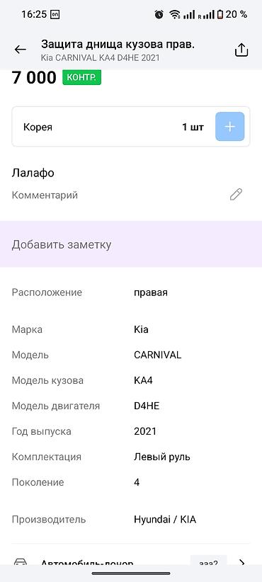 Защита днища кузова правая для Kia Carnival KA4 (поколение 4), двигатель D4HE, год 2021. Оригинальная деталь Hyundai/Kia, маркировка на пластике: KA4 RH, материал PET. Крепежные точки штатные, форма соответствует правой стороне. Подходит для версий с левым рулем. Страна производства: Корея.