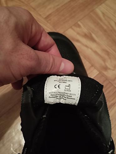 Подходит для строительства, склада, производства, СТО и других работ, где требуется обувь класса S3. На ярлыке указана дата 02/2025 и номер партии. Подошва с выраженным рисунком для надежного сцепления.