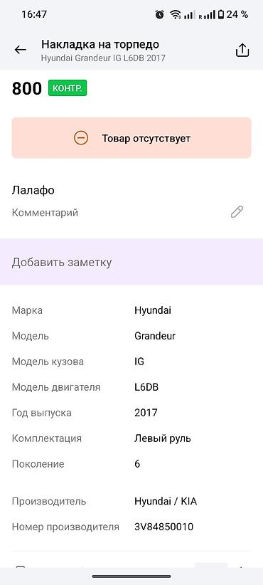 - Совместимость указана для Grandeur IG 2017 с левым рулём