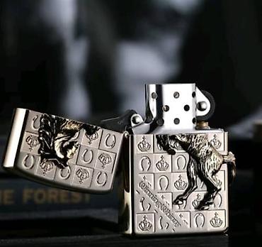 Бензиновая зажигалка с оригинальным дизайном. Корпус зажигалки украшен объемным изображением лошади, а также узором из подков и корон. Отличный вариант для коллекционеров или любителей стильных аксессуаров.