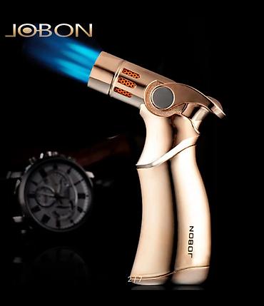 Металлическая ветрозащитная Бутановая газовая зажигалка JOBON для использования на открытом воздухе, синее пламя, турбо, 4 _ струйная Зажигалка для сигар