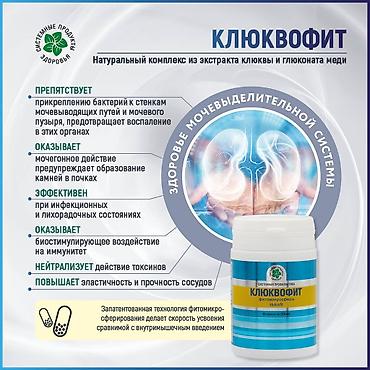 Клюквофит - натуральный комплекс из экстракта клюквы и глюконата меди, изготовленный по технологии фитомикросферирования, благодаря которой активные вещества компонентов действуют особенно эффективно, обеспечивая бактерицидное, противовоспалительное, мочегонное действие при инфекционных процессах мочевыводящих путей.