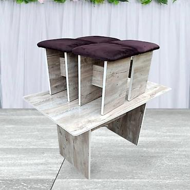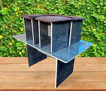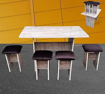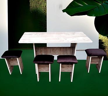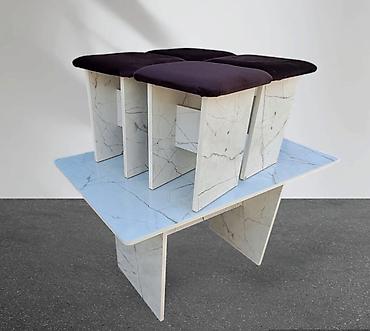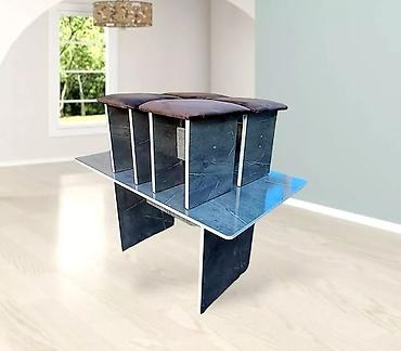 Комплект обеденного стола - Современный дизайнерский комплект: стол + табуреты. - Материал: панели под камень/графитовый керамогранитный декор с матовой фактурой. - Стол с геометрическим основание...