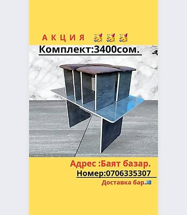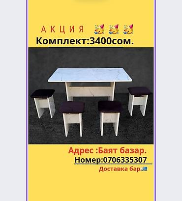 Комплект обеденного стола - Современный дизайнерский комплект: стол + табуреты. - Материал: панели под камень/графитовый керамогранитный декор с матовой фактурой. - Стол с геометрическим основание...