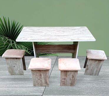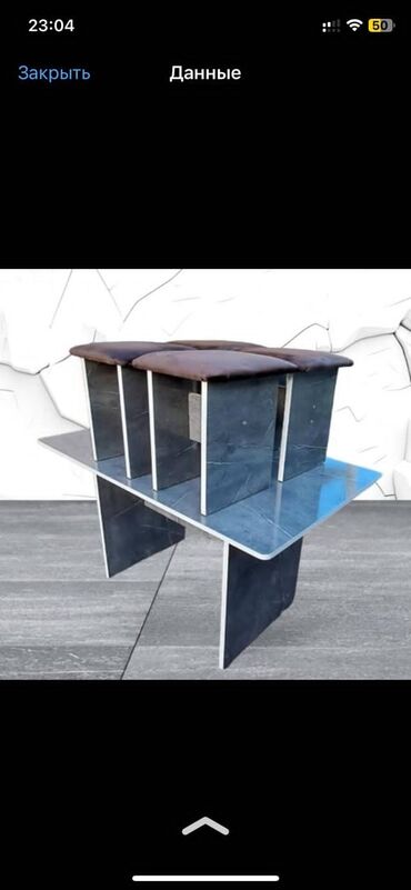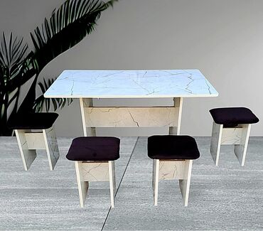 Обеденный комплект стол + табуреты - Комплект: прямоугольный стол и 4 табурета. - Материал: ЛДСП с имитацией камня/мрамора, кромки обработаны. - Столешница прямоугольная, устойчивая опора-тумба. -...