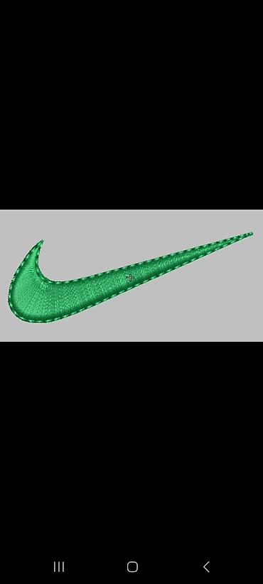 Нашивка-эмблема в форме галочки (swoosh), выполненная из зелёной сатиновой вышивки.