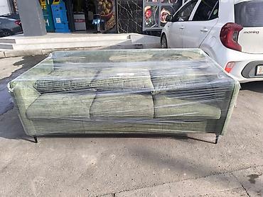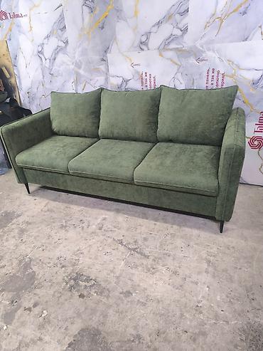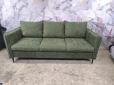 Зелёный трёхместный диван в современном минималистичном стиле.