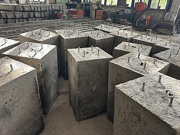 - Монолитные блоки из тяжелого бетона с закладными и выпуском резьбовых шпилек под крепление опор.