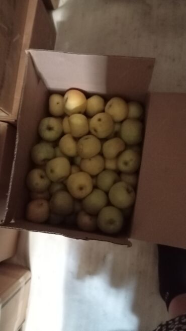 Яблоки (средний и мелкий калибр), сортовые, в деревянных контейнерах. Характеристики: - Размер: преимущественно мелкие плоды, удобные для переработки. - Окраска: зелёно‑жёлтая с румянцем, встречаю...