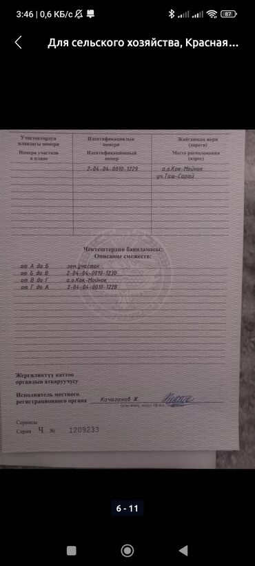 - Местоположение: а/о Кок-Мойнок, уч. Таш-Сарай (адрес отражён в госакте).