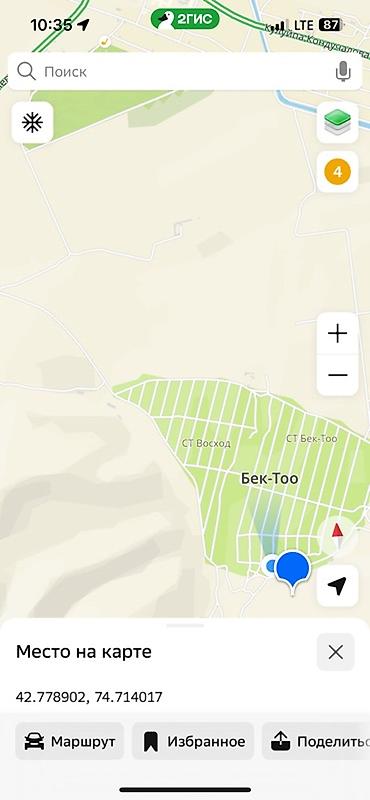 Земельный участок, Бек-Тоо (СТ Восход/СТ Бек-Тоо), координаты 42.778902, 74.714017