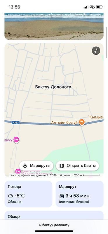 - Ориентиры: рядом туристическая зона Иссык‑Куля, пляжи и объекты сервиса в Бактуу‑Долоноту.