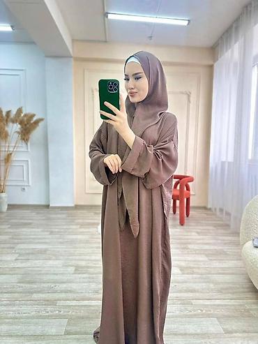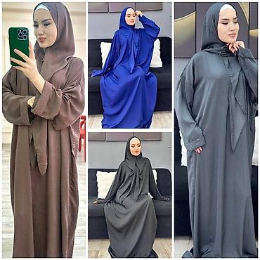Женская абайя с капюшоном и шарф-воротником - Свободный прямой крой в