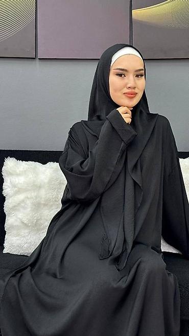 Женская абайя с капюшоном и шарф-воротником