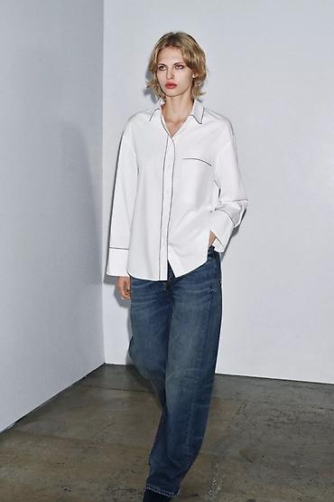 Белая женская рубашка с контрастным кантом Zara