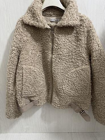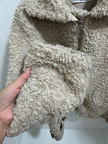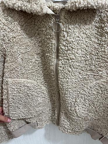 Тедди-куртка из мягкого «овечьего» фактурного материала (шерпа/букле) в бежевом цвете.