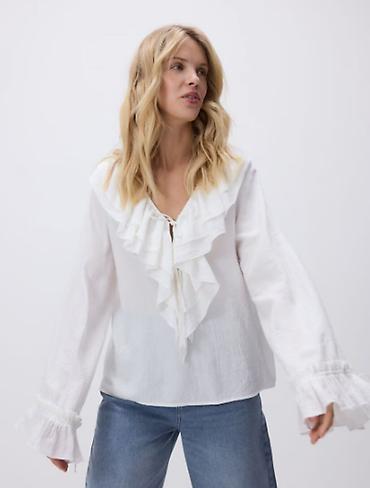 Идеально сочетается с джинсами, брюками и юбками, создавая романтичный и воздушный образ для повседневных и праздничных выходов.