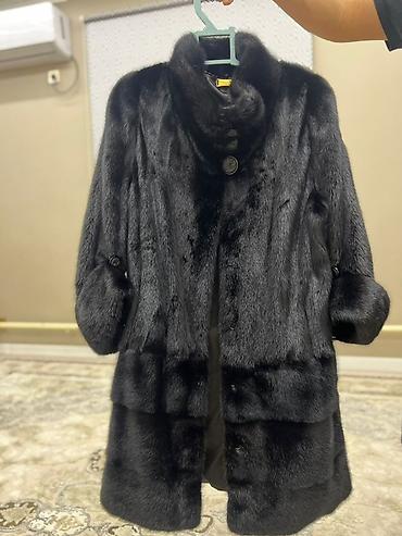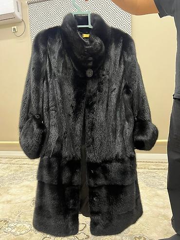 Шуба из натурального меха норки, цвет – глубокий чёрный. Классический