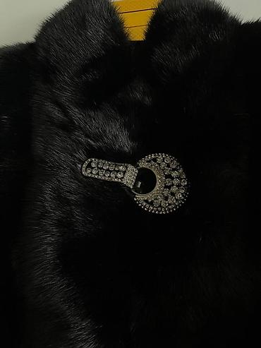 Эффектная, теплая шуба в классическом черном цвете с акцентной брошью суваровскими камнями — универсальна для города и выхода.