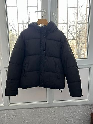 Пуховик H&M с капюшоном, черный. - Прямой силуэт, горизонтальная