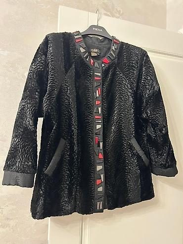 Подходит для повседневных и вечерних образов, сочетается с брюками и платьями. Теплая, мягкая, с красивой фактурой каракуля и акцентной отделкой. Размер ориентировочно средний (оценивать по фото: свободная посадка).