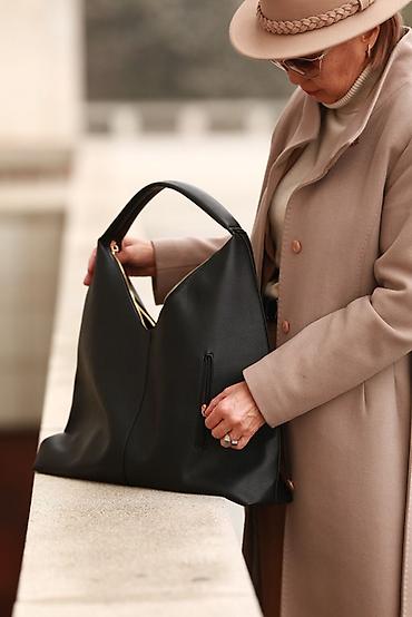 Сумка-хобо из черной фактурной кожи - Формат: вместительная
