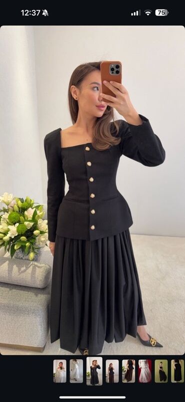 Юбка миди с пайетками - Цвет: черный с глянцевым сиянием. - Фасон: прямой крой, длина миди ниже колена. - Детали: полностью расшита пайетками, небольшой разрез сбоку для удобства шага. - Посадка: ...
