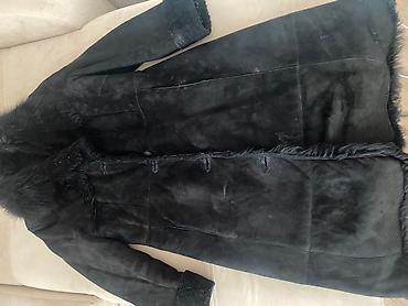 Тёплая классическая модель для холодной погоды; сочетается с повседневными и элегантными образами. Цвет — глубокий чёрный. Размер визуально — на средний рост, свободная посадка по груди и бёдрам.