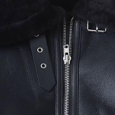 Укороченная женская дублёнка-авиатор, цвет черный.