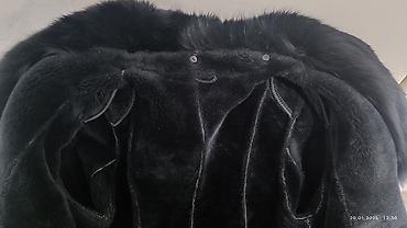 - Объёмный съёмный воротник из густого чёрного меха (крепление на кнопках)