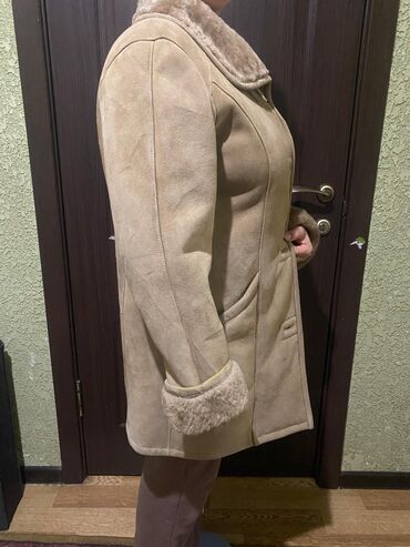 - Натуральная овчина: мягкий мех внутри, тёплый отложной воротник и меховые отвороты на манжетах.