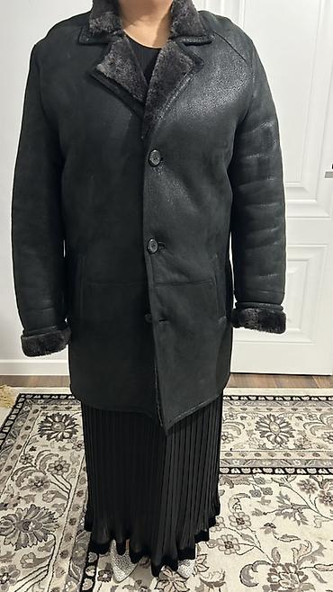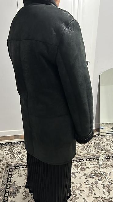 - Материал: натуральная овчина (внешняя сторона — матовая кожа, внутри — густой мех графитового оттенка).