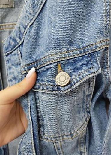 Женская джинсовая куртка в светло-голубом цвете с карманами. Размер М 44-46