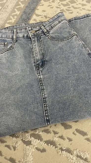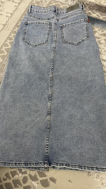 Юбка, Модель юбки: Прямая, Миди, Джинс, Высокая талия, С вырезом