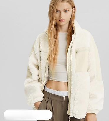 Bershka Женская куртка из мягкого «меха» (шерпа) в молочно‑бежевом