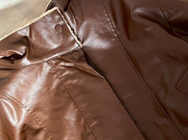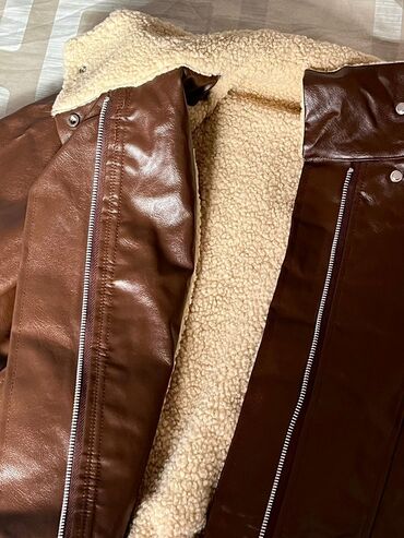 Куртка авиатор из коричневой эко‑кожи с тёплой подкладкой из искусственного меха (овчина).