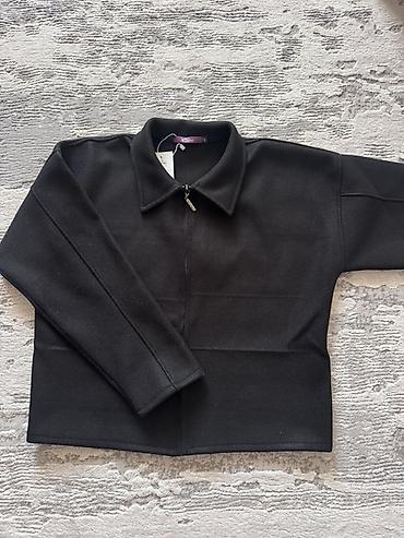 Женская укороченная куртка-рубашка черного цвета. Особенности: -