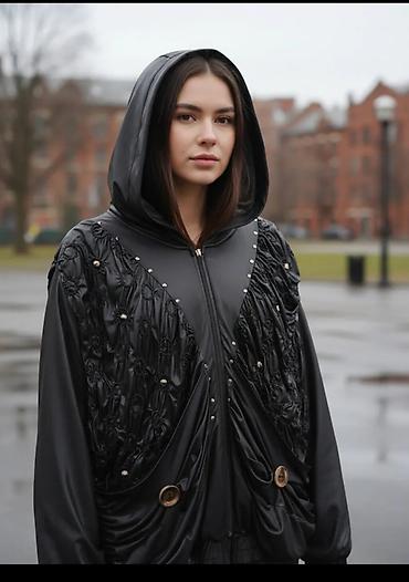 Женская куртка с капюшоном, дизайн «total black»