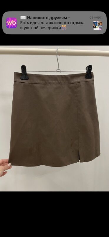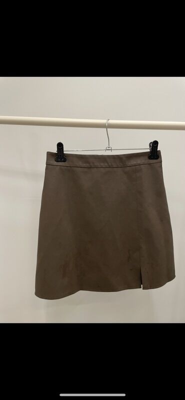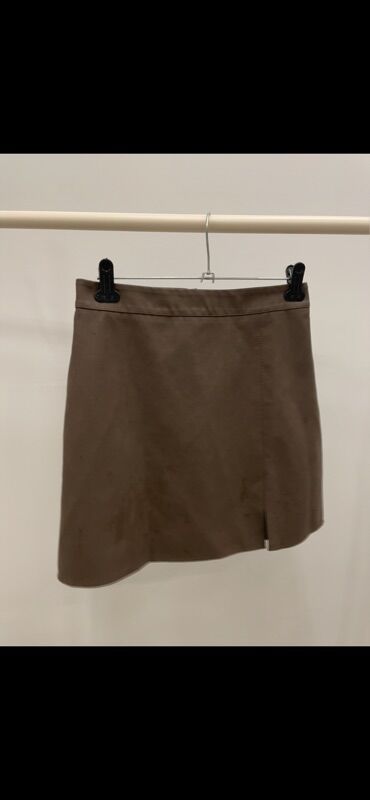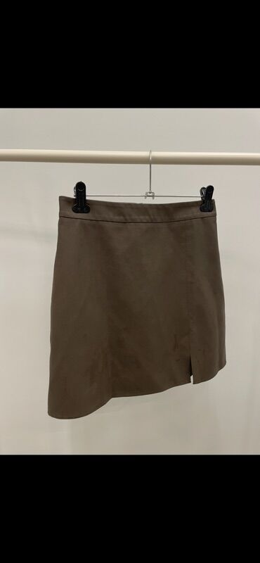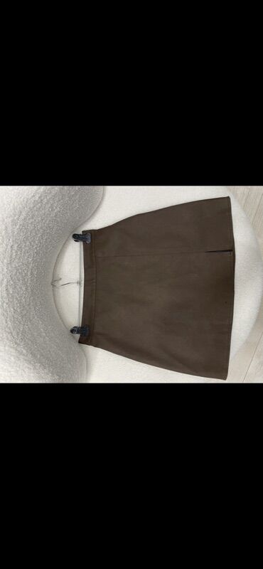 Мини-юбка из тёмно‑коричневой кожи с ремнём ZARA - Материал: гладкая натуральная кожа (визуально плотная и мягкая, с лёгким матовым блеском). - Цвет: глубокий шоколадный. - Посадка: на талии. - Си...