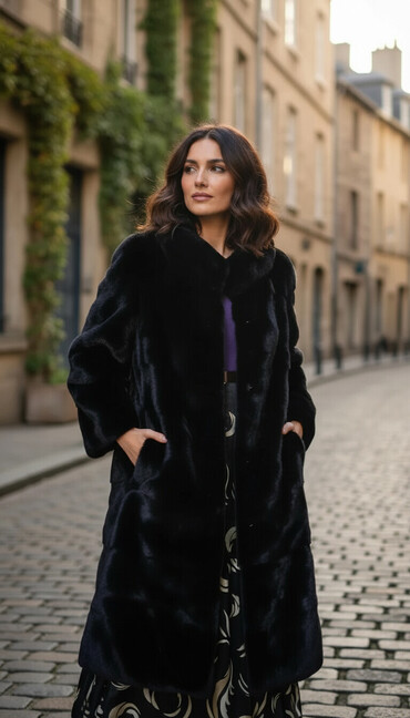 Элегантная классическая модель, подходит к платьям и брюкам, визуально стройнит за счет вертикальных линий и длины миди. Отличный выбор для холодного сезона и вечерних выходов.