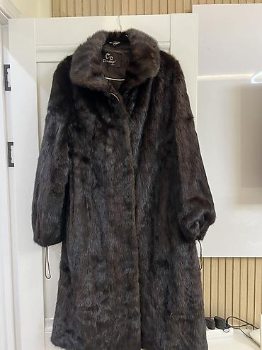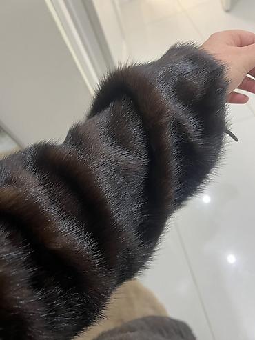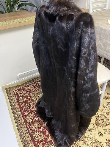 Шуба из норки, шоколадно‑коричневый оттенок, длина макси.
