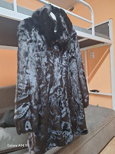 Шуба из натурального меха норки, классического черного цвета с легким