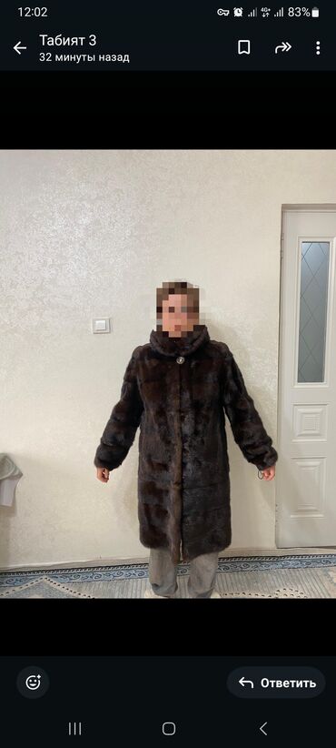 Шуба из темного меха (норка), женская Размер с/м - Цвет: темный шоколад с благородным блеском - Фасон: прямой силуэт, длина регулируется - Рукава: 3/4, можно добавить и удлинить. - Ворот: стойка ...