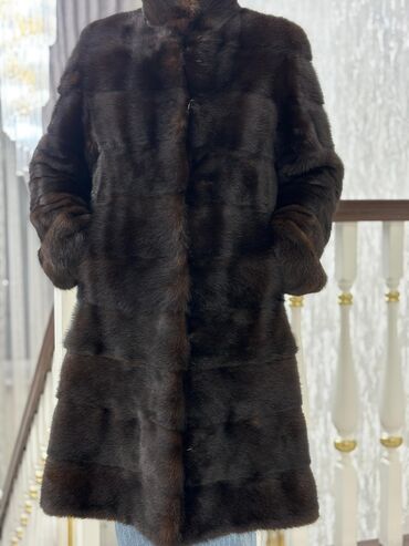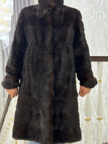 Шуба из норки, длина по колено, размер M на 46 - Натуральная норка глубокого шоколадного оттенка. - Прямой силуэт с горизонтальной раскладкой меховых пластин, визуально выравнивает фигуру. - Высо...Вход•Регистрация