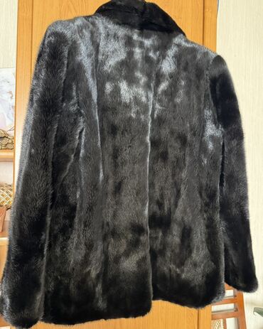 Шуба из натурального меха норки, цвет — глубокий черный. -