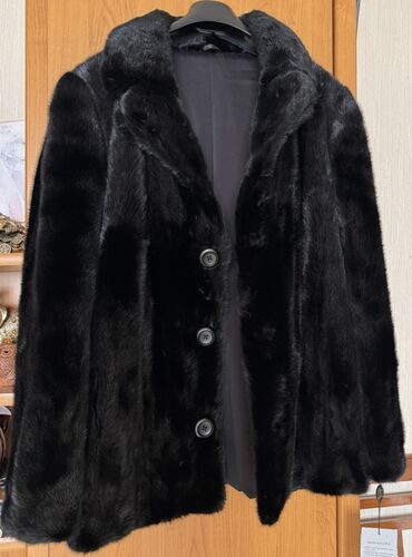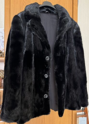 Шуба из натурального меха норки, цвет — глубокий черный.