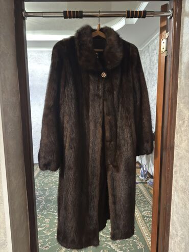 Длинная норковая шуба, темно-шоколадного оттенка (почти черный), классического кроя. Особенности: - Натуральный мех норки с густым блеском, ровный ворс. - Прямой силуэт до середины икры/ниже колен...