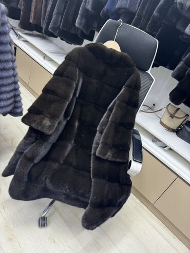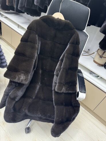 Шуба из норки, темно-шоколадный оттенок.