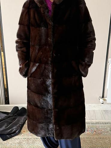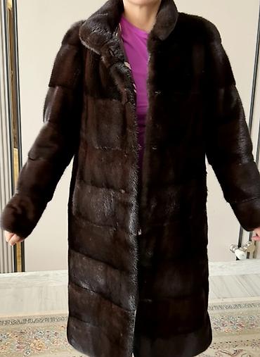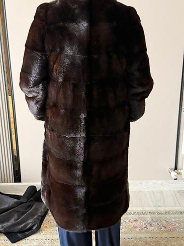 Шуба из норки, темно‑шоколадный цвет. Новая. Небольшой торг уместен. Характеристики: - Материал верха: 100% норка (ярлык “Fabric content: 100% mink”). - Подкладка: 100% полиэстер. - Размер по яр...