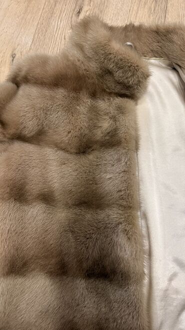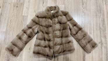 Шуба из натурального меха норки, насыщенный темно-шоколадный оттенок. Прямой силуэт до колена/ниже колена, объемный воротник-стойка. Продольная раскладка шкурок с поперечными вставками создает мягк...